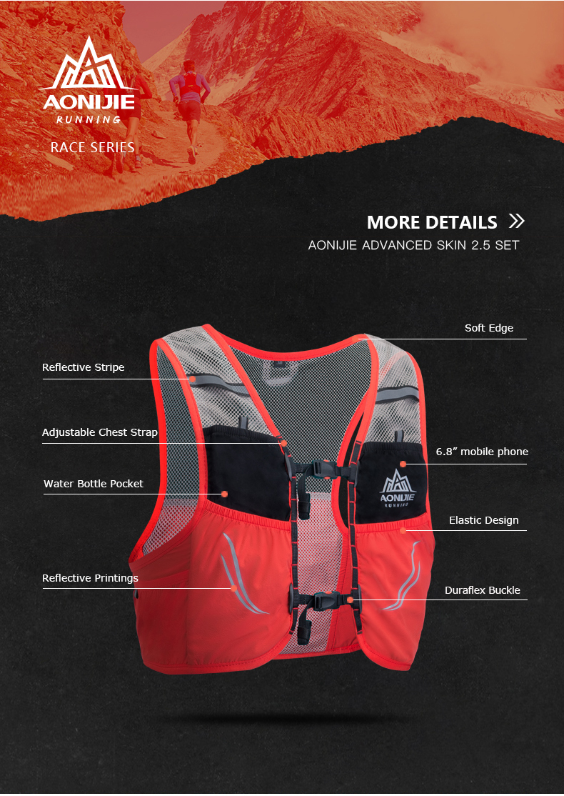 -Эргономичный дизайн, сумка в форме жилета с регулируемым ремешком на талии и высоким эластичным нагрудным ремнем.