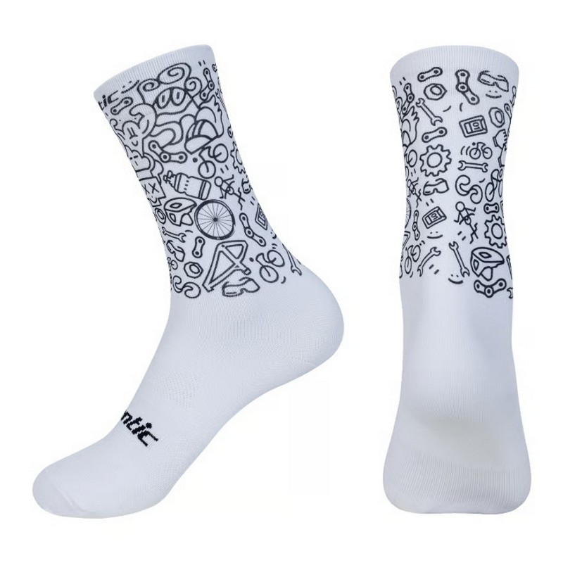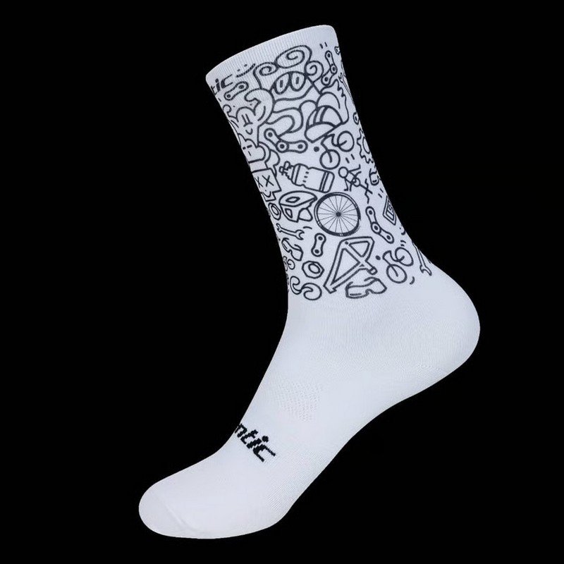 Добавьте индивидуальности вашему спортивному образу с высокими велосипедными носками Santic W3P1396. Модель из эксклюзивной серии Bobbi сочетает в себе профессиональные характеристики и уникальный графический принт в стиле «дудл» на велосипедную тематику.